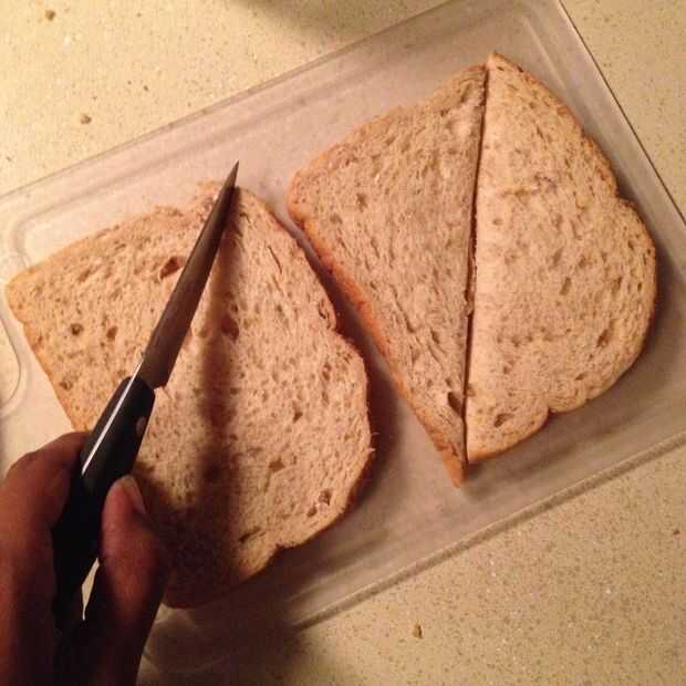 3. Schneiden Sie die Brotscheiben 5 en Dreiecke falls gewünscht und zur Seite schwenken.