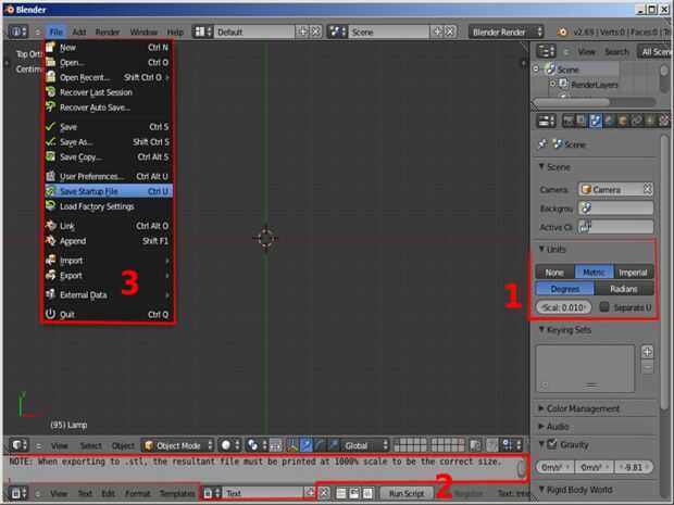 Si utilizas batidora principalmente para la impresión 3d, puede guardar todas estas cosas como la escena por defecto para que todo comience listos para ir.