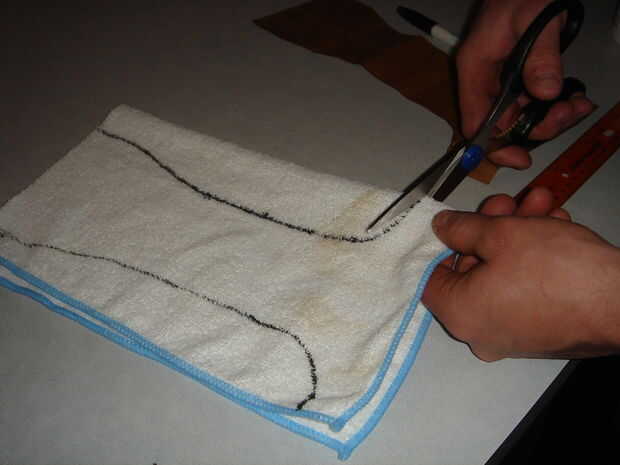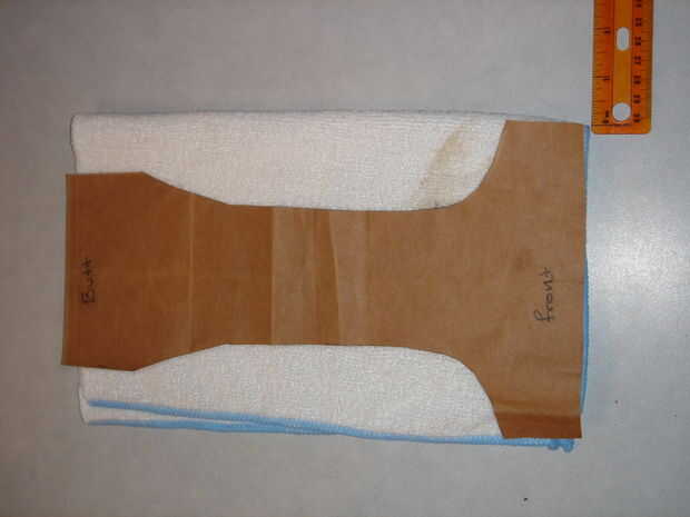 Para hacer las cosas un poco más rápido ejecutar he doblado mi chamie en mitad y trazado el patrón sobre ella para hacer dos pañales.
