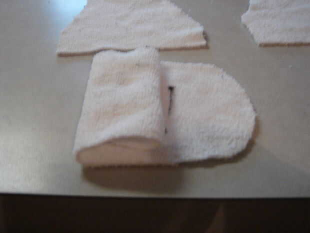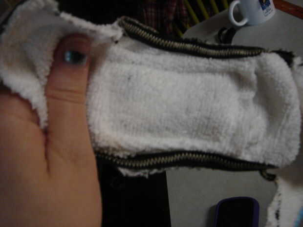 -Usa la chatarra aquí para hacer un "pad". Girando los trozos y hacer un tubo, luego coserlo en medio de la diap. (Esto no es es totalmente necesarios, pero que los cortes hacia abajo en "fuga de avance".)