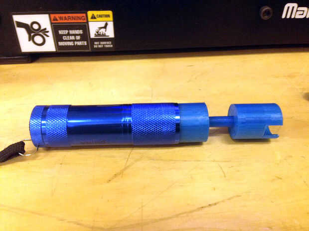 reutilizar una luz led (estas cosas son muy baratas ahora) - cilíndrico 3 AAA soporte de la batería era perfecto para mis necesidades, y el factor de forma de la herramienta también era buena. Algunos 3D impreso piezas para sostener el motor y para el mando y un PCB para el cableado, y terminé!