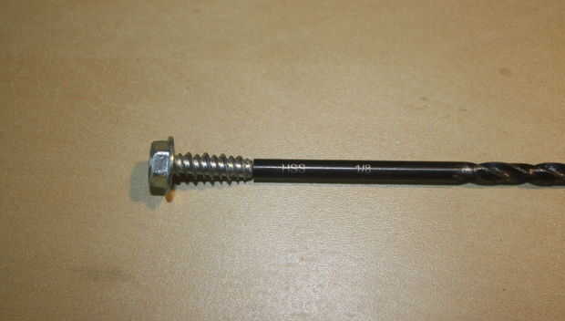 Utilizan un 1/8 broca para el taladro.   No quería dividir el mando mi Panavised usé un tamaño que era sólo un poco más grande que la caña del tornillo.