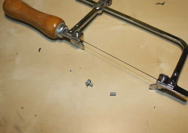 Yo utiliza Sierra de joyero para cortar el tornillo. Mayoría de la gente utilizaría una herramienta dremel para esto pero nunca me ha gustado usar minas.