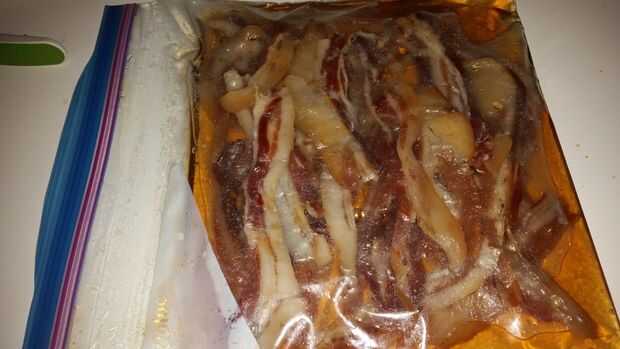 Remojo frío mantendrá la textura especial de la grasa deshidratada y carne y mantendrá más grasa en las tiras que hervir a fuego lento.