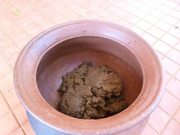 - Tomar unos 500 gramos de estiércol de vaca en una olla limpia tierra
