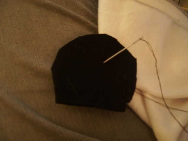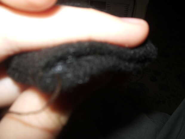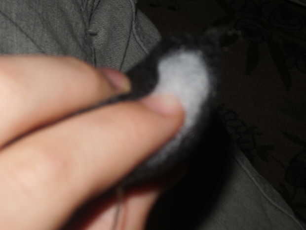 OK, ahora es tiempo para cosas con relleno de fibra. utiliza sobre un medio puñado de relleno para cada oído, que era un poco mucho.