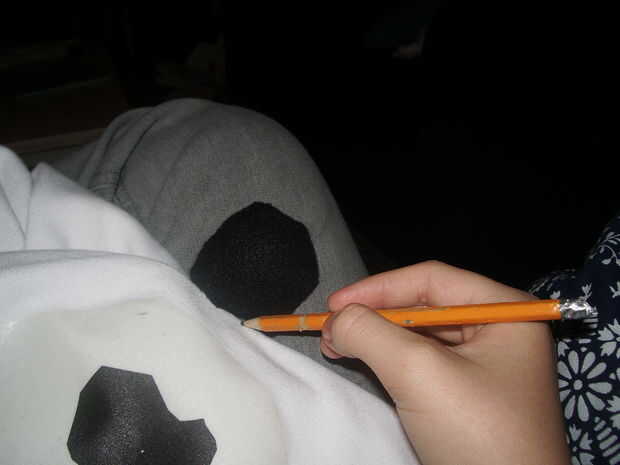 en primer lugar, marcar donde quieres las orejas en la capucha.