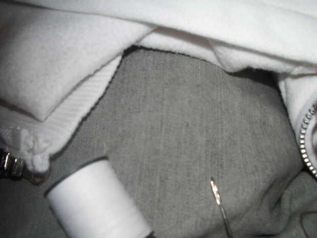 Ahora toma el hilo con capucha y coser a lo largo de la base de la oreja y a través de la sudadera con capucha