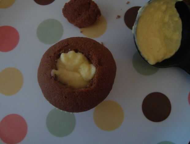 -Corte um pedaço centro bolinho, encha com crema. Feche novamanete.