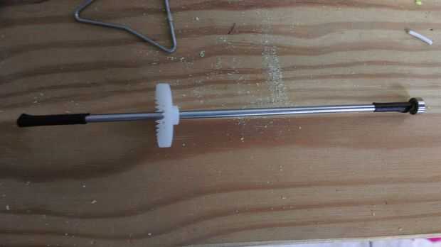 1. Fije teniendo a uno de los extremos del huso y añadir el rodillo al huso, pegamento del engranaje como la imagen muestra al huso, lugar el rodillo situado en la caja y comenzar a cepillos al rodillo con algún adhesivo de la planta.