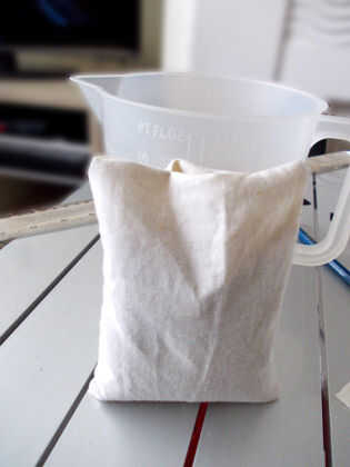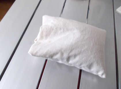 Girar a la derecha de la bolsa de algodón hacia fuera y llenar con su seco comida de elección.  Coser la bolsa cerrada y está listo para el horno de microondas.