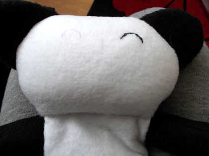 Esto es donde entra el hilo de bordar (opcional). Si no tienes ninguno, puede utilizar hilo regular doblado (esto es lo que hice, mi hilo de bordado ha ido walkies!) Quería mantener la cara bastante simple, como la cabeza de panda no es particularmente grande, pero no dude en decorar la cara como le parezca (siempre es ideal para crear ojos para peluches fieltro.) Marqué con alfileres, donde querían las características ir y utiliza una pluma borrable del aire a la cara antes de coser los ojos y la boca. Sin embargo, si eres un experto en el bordado (a diferencia de mí) puede hacer todo a mano alzada!