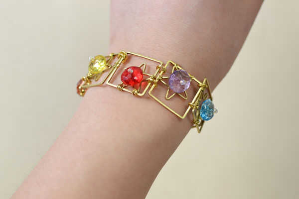 Aquí le damos la apariencia final de esta pulsera cuadrada oro personalizada para las niñas.