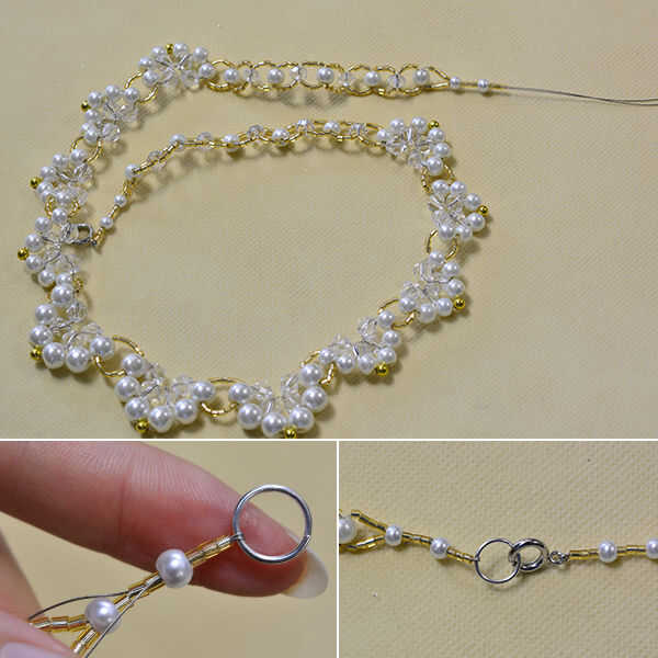 2 º, combine este fin con una plata anillo del salto y corte los cables tigre exceso. A continuación, conecte los dos extremos de la perla collar juntos.