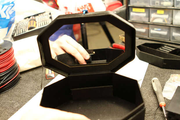 Así que cortar el tornillo, utilice pegamento caliente para fijar en el interior de la tapa en el lugar que quieras que sea. (o tornillo a través de la caja)