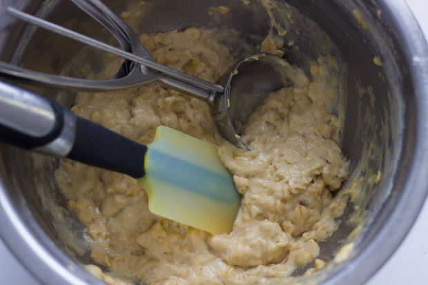 pikelets rápido, fácil y delicioso. Hace 12.Cosas que necesitará:Tazón de fuenteMasherAceite de olivaCanelaAvena1 plátanoPanEspátula dePaso 1: Agregue 1 pelada y banana picada, 1 y media cucharadas de avena, una cucharadita de canela y dos huevos con