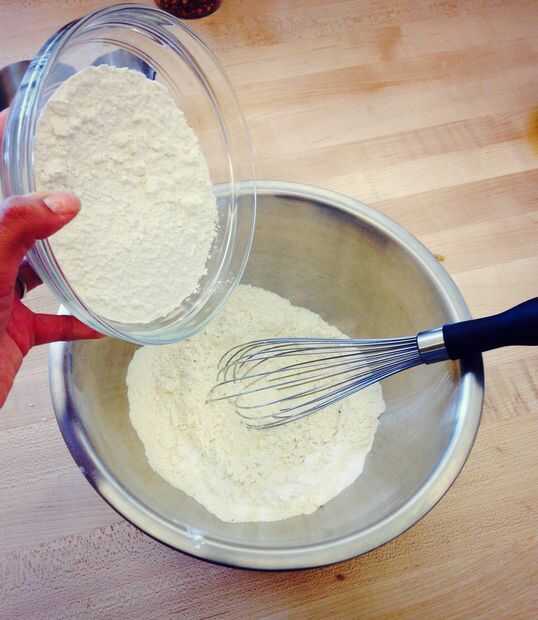 Mezcle la harina, bicarbonato, polvo de hornear y sal.