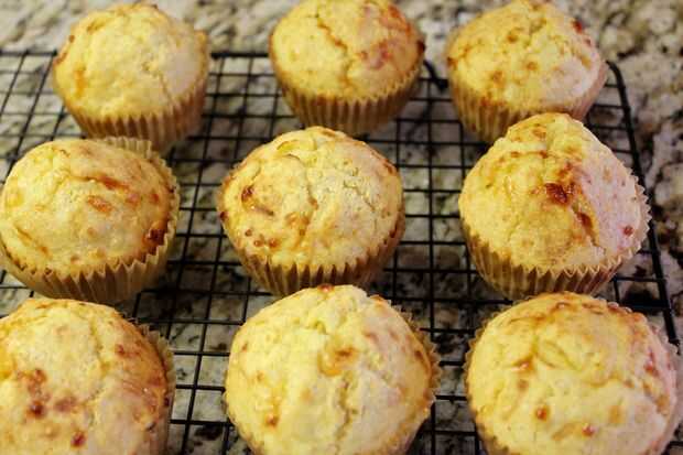 Mezcla de cuchara en un molde de muffin con forros de papel (12). Hornee a 425 grados durante unos 23 minutos. Quitar bollos de lata del mollete inmediatamente a enfriar sobre una rejilla para enfriar (para que los fondos de muffin no se empapado de vapor).