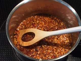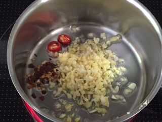 Añadir jengibre ajo y enfriar el aceite. Saltear a fuego lento.