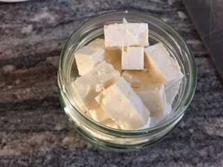 el aceite sella el queso de aceite y lo preserva. también ya que utilizamos el aceite condimentado y preparado que lo hará durante el período de tiempo marinar los sabores en el queso.
