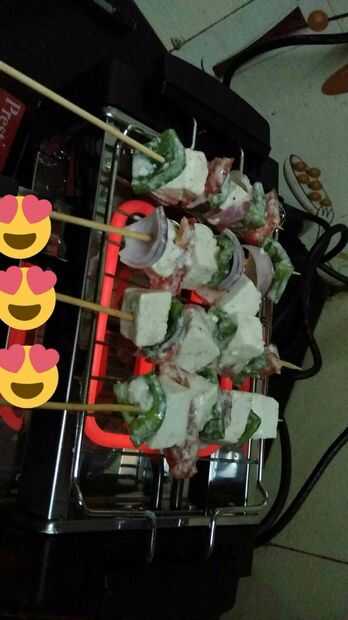 5. Mantenga girando los palitos para cocinar uniformemente por todos los lados. Cocinar hasta que el paneer es marrón en color por todos lados claro. No paneer de cook que se pondrá duro y gomoso.