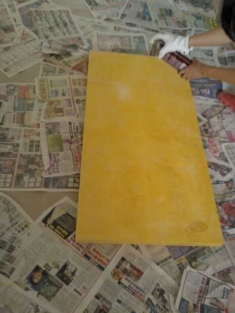 Si, como yo, sólo puede tener acceso a tablas de 5cm, usted simplemente puede pegar las 2 placas con una capa de adhesivo en aerosol.