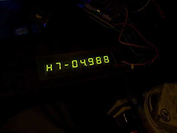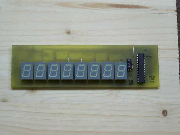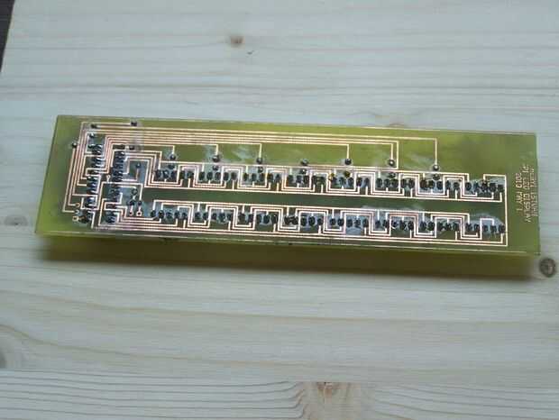 Aparte de algunos problemas de hardware (cortes muy finos en los rastros de PCB), este módulo encendido casi al primer intento. Tenía dos cortes y un cortocircuito entre dos rastros, éstos eran bastante fáciles de localizar. Sería de segmento ' simplemente no luz para arriba en los primeros 6 dígitos en el primer comienzo, encontré un corte entre el dígito 6- y 7 con el multímetro. Una vez que se fija con un poco de soldadura, el problema desapareció. De nuevo, con mi multímetro, situado a un corto entre los segmentos 'e' y 'f', rayados, todo volvió a la normalidad.