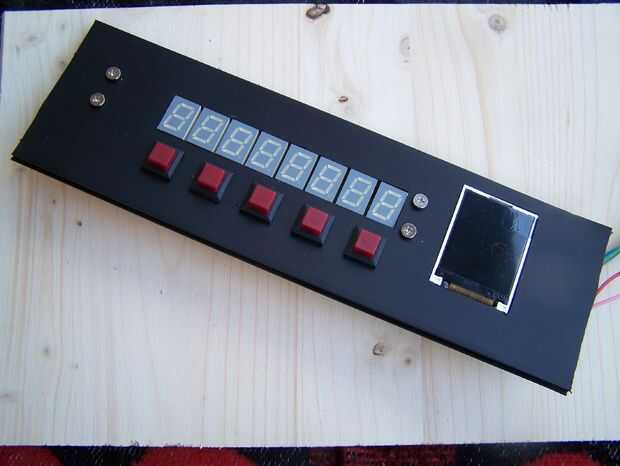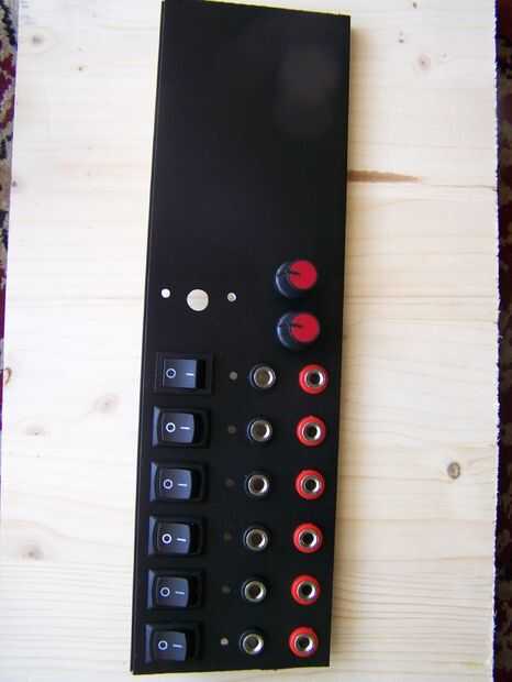 Luego, el panel fue pintado con pintura en aerosol negro, y se montaron los interruptores, macetas, enchufes de plátano y el codificador.