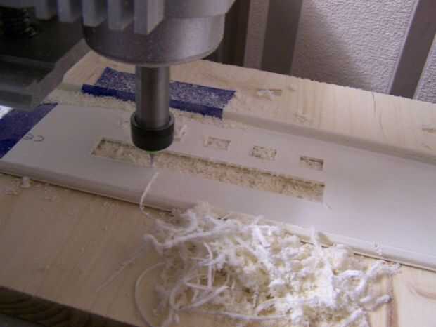 El primer intento fue bueno con la pantalla, pensé hacer uno con el molino CNC también, para hacer precisión. Mala decisión, corrí fuera de suerte, y presiona el botón de emergencia demasiado tarde, la punta se rompió. Al menos puedo mostrar cómo hice paneles frontales, antes de llegar al molino. Taladre los agujeros primero, luego taladre un contorno de cada forma rectangular, ambas acciones con un 3 mm broca. Después de uso una maquinilla para quitar el centro de los rectángulos y el resto, para los interruptores de la pila. Usé un interruptor y una pinza para poner a prueba los recortes.