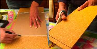 Medir la cantidad de panel de corcho que se debe montar directamente encima de la roca de la hoja y corte el panel de corcho.