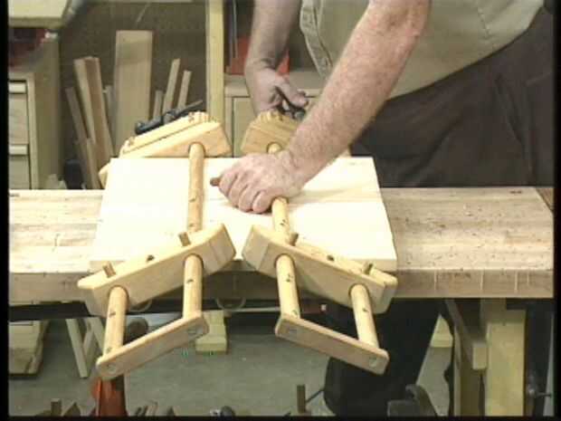 En uso, rotando la pinza para que las piernas horcajadas ambas superficies estrechamente facilitará la alineación de los bordes adyacentes de stock. Establecer el proyecto en la parte superior de un banco y terminar aplicando una fuerza hacia abajo sobre la pierna superior. Un rap de mazo luz ayudará a asegurar que los bordes superficie acabados (arriba) están al ras. Para terminar un final ajuste de la abrazadera.