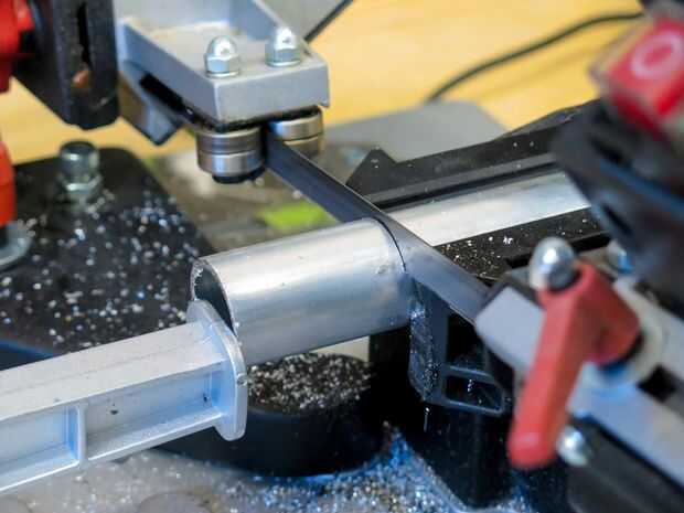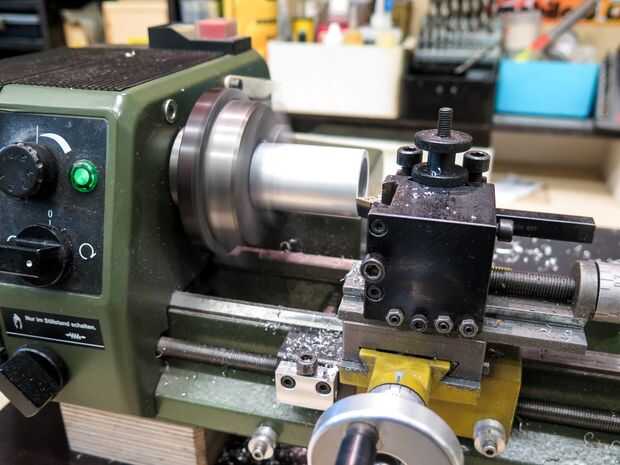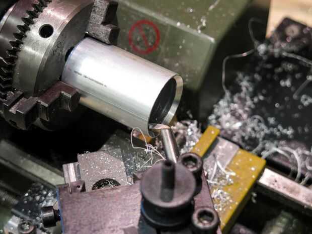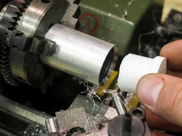 En un torno enderezar los bordes y los hizo en longitudes, 50mm. Para acomodar los bordes biselados que también corte a 45 grados del chaflán en los tubos. Una prueba de ajuste hicieron que todo estaba bien. Tomó bastante tiempo, pero al final se realizaron 6 postes.