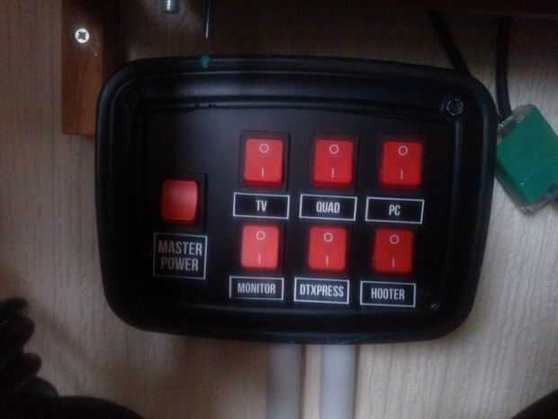 Tengo tantos artículos que tengo que encender y apagar en mi estudio de música casero pequeño. PC, TV, Monitor, amplificador, batería etc. Ellos son conectados a un cable de extensión de la 6 banda. Así que cada vez que necesito para activar cosas y apagado tengo que agacharme, esto no es bueno si usted tiene una parte posteriora del malo como yo. Así comenzó el proyecto! (No tomo fotos mientras esto por lo que no se muestran todas las etapas).