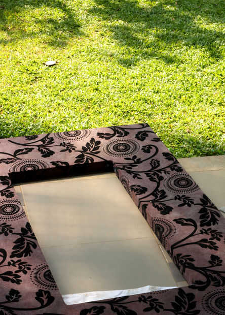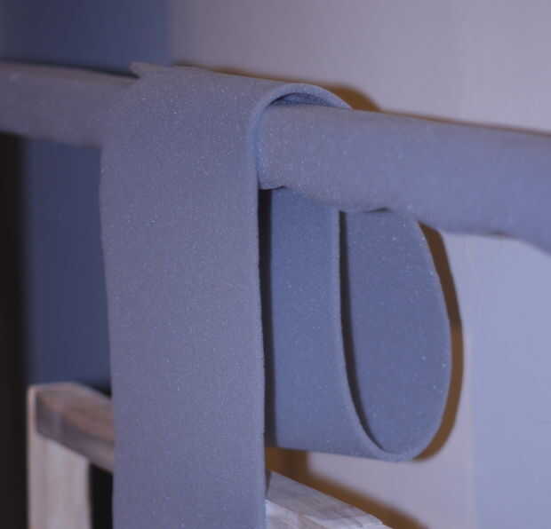 Luego de terminar todas las obras y sólo esto fije a la pared. Si usted necesita cubrir más puede colocar otra tela para cubrir la parte inferior del marco utilizando cintas mágicas. luego cubrir toda la zona.
