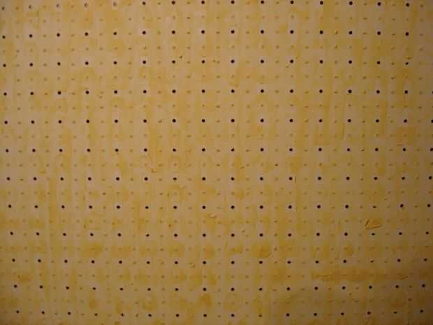 Esto es simple, si un poco tedioso. Vas a llenar cada otra columna y fila con masilla para madera. Pero primero debe cinta la parte de atrás de las filas y columnas para que el relleno no se caiga a través. Dependiendo de su paciencia o habilidad, esto podría tomar unos pases de relleno y lijado. Será el mejor trabajo que hacer ahora, el suavizador la pintura.