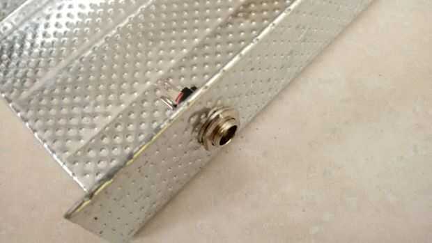 Corte cerca de 110cm desde el canal de perno prisionero del metal ancho 90mm. Perfore un agujero del tamaño de la toma de alimentación en un extremo de la misma y limpiar con papel de lija o herramienta rotativa. Instale al conector de alimentación.