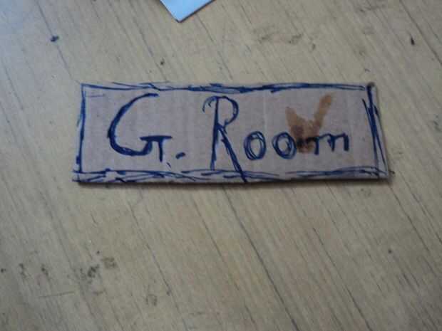 Tomar una tira rectangular de cartón y escriba el nombre y también mostrar algunos arte haciendo bordes alrededor de la tira. Había escrito "Sala g".