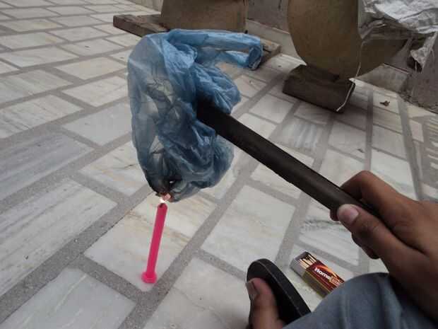 Tome una bolsa de plástico y quemar la parte de la esquina de él hasta que coge el fuego. No dejes que la bolsa de liberación negro humo inmediatamente vaya al paso siguiente.