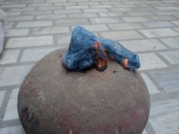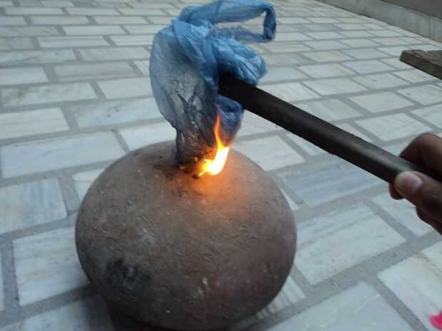Antes de que salga el humo, utilizando el par de pinzas de la bolsa se coloca en la olla mirando el suelo y déjelo a fundirse en algún momento y formación base para nuestro panel (todas las bolsas son para colocarse en esto). Mover el plástico fundido utilizando el par de pinzas para hacer una forma circular.