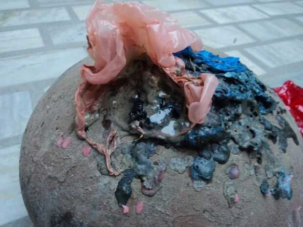 Elegir unos más bolsos y derretirles otra vez en la base hasta que se forme una cama de plástico sólida para ser utilizado como panel. Derretir el plástico todo en la olla. Puede hacer sus propios diseños en ella como es costumbre diseñado. Que se convierten en fresco durante algún tiempo unos 15 minutos y luego pasar al paso siguiente.