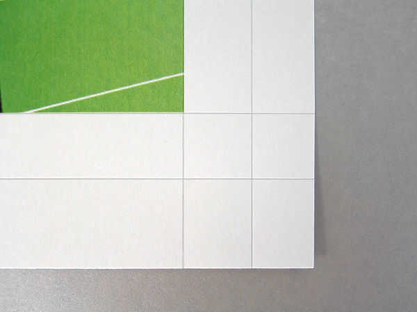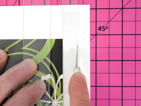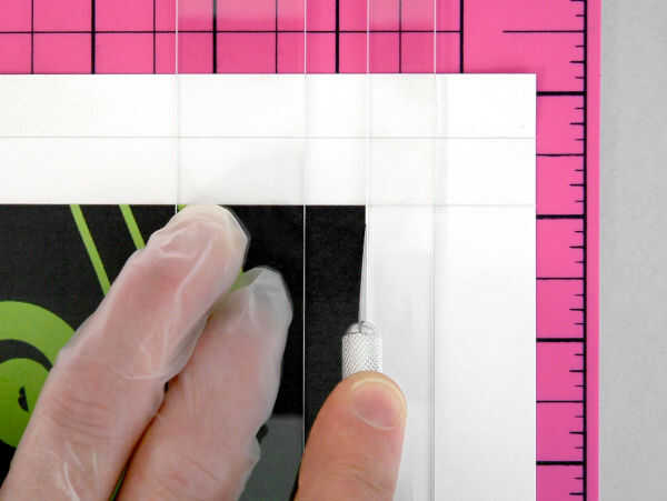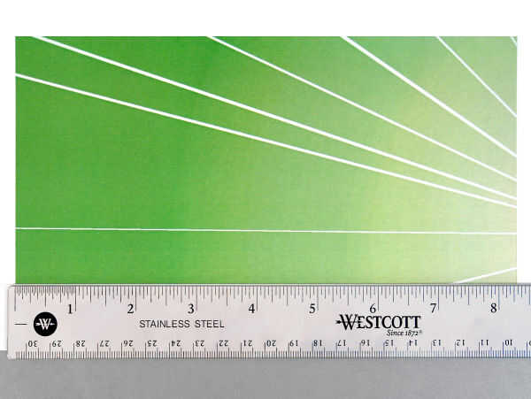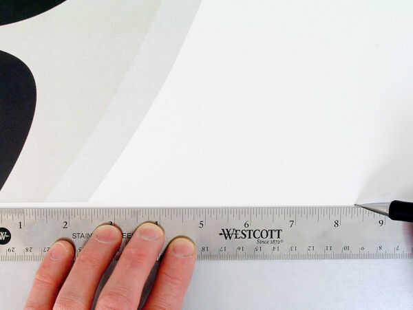 - Imágenes con una gran cantidad de blanco de. Si usted tiene un montón de espacio en blanco no se verá dónde anotar. (FOTO 4-4) Para calcular hacia fuera donde marcar, medir el ancho de un panel color. (FIG 4-5) En el panel para anotar, hacer marcas de lápiz de luz donde usted debe anotar. (FOTO 4-6) Puntuación como de costumbre. (FOTO 4-7)