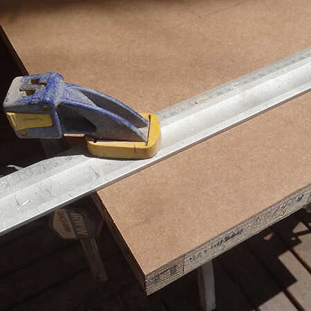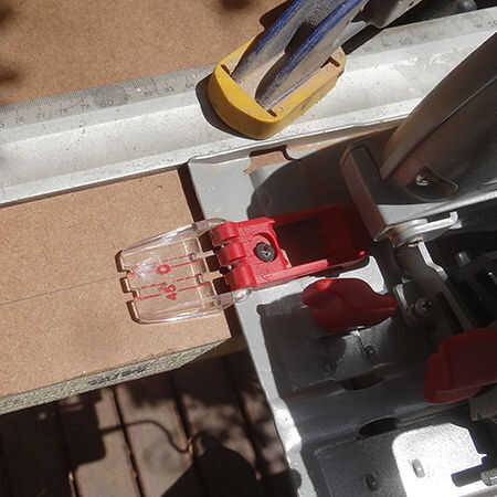Puesto que es sólo una pequeña sección de la guía no funcionará, así que asegúrese de cortar una línea recta una regla de acero como guía de la abrazadera. Asegúrese que la cuchilla de la sierra en la alineación perfecta para cortar la cantidad correcta. No quiero un gran vacío en la parte inferior de la puerta.