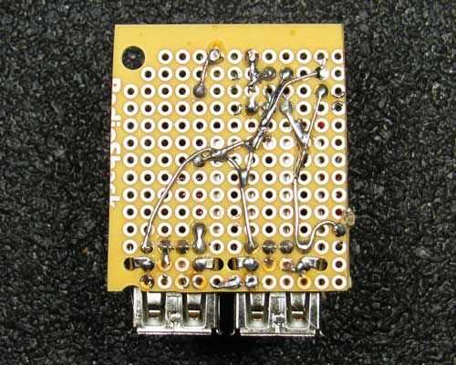Montar la Junta mediante el esquema de conexiones. Soldar todas las conexiones de los conectores USB para hacer un montaje más sólido. También doblada sobre las lengüetas de montaje y los soldados.