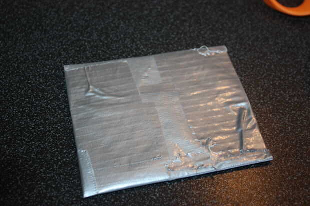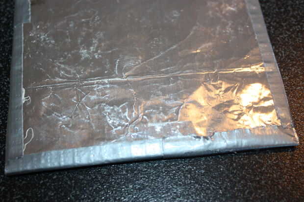 Poner cinta 1/4 de pulgada de los bordes de la parte delantera del panel reflectante y pliegue el extra en la parte trasera. Después de que cubren la espalda con cinta adhesiva.