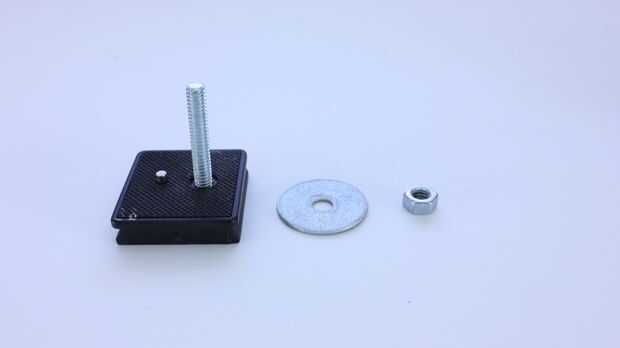 El plato de liberación rápida en un trípode se utiliza normalmente para montar una cámara en el trípode. En este caso vamos a utilizar para fijar el marco de montaje de panel solar para el trípode. Lamentablemente, el tornillo de la placa de liberación rápida no es tiempo suficiente para que sujete el marco. Así que vamos a reemplazar con un perno más largo.