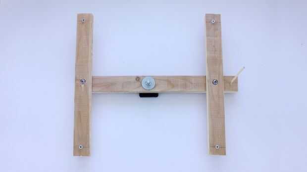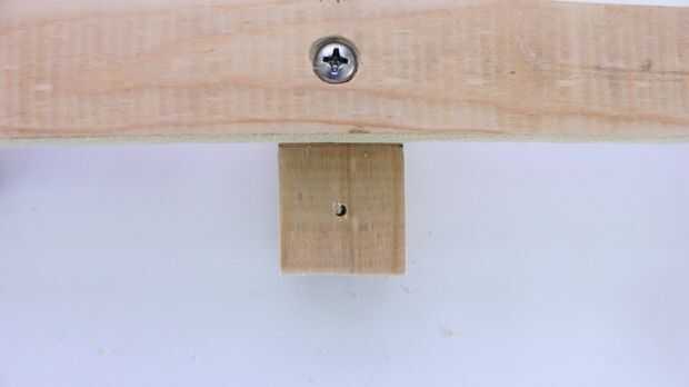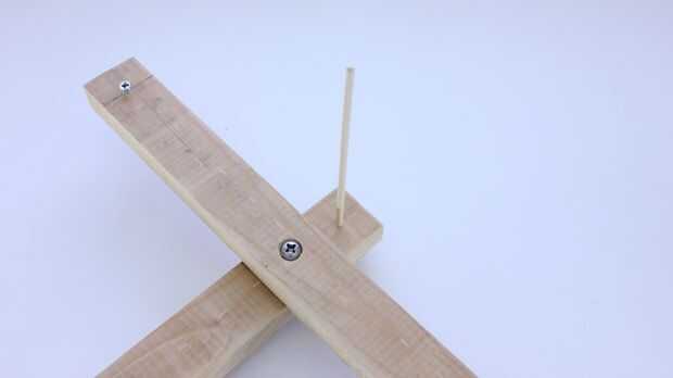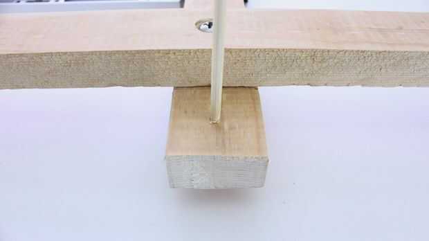 Empezar por encontrar un pequeño pasador de madera para usar como una aguja. Luego buscar una broca es del mismo tamaño o un poco más pequeño que el pasador. En la sección de la barra transversal que sobresale más allá de la barra lateral, haga un agujero. Tenga mucho cuidado al hacer el agujero hacia abajo. If lo contrario no le dará una alineación precisa. Por último coloque el pasador en el agujero.