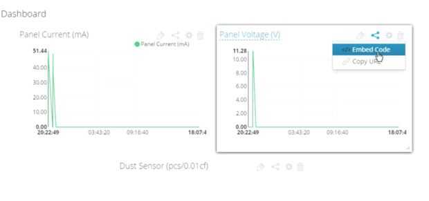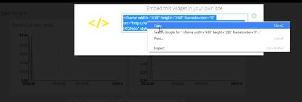 2. copiar el código embed de variable configuración en el servidor Web que está en formato iframe del tablero como se muestra en imagen.