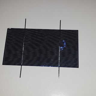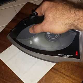 3. Coloque la plancha muy caliente (sin vapor), Coloque suavemente una célula solar con fichas en una bolsa laminada con cables colgando hacia fuera bonito y estrecho de tabulación. Coloque esta bolsa en la manga de papel y suavemente presionar el hierro y mantener en su lugar durante unos 10 segundos laminar bien. Tendrás que hacerlo en muchos puntos en la bolsa a todo laminado... a menos que tenga una superficie enorme de hierro a la cosa entera. Haz los bordes muy bien. Estar dispuestos a quemar los dedos un poco cada vez que usted retire la célula solar laminada. Inmediatamente tras extraer la celda solar laminada caliente, pulse rápidamente los bordes hacia abajo con los dedos para sellarlo muy especialmente donde sobresalen los cables tabulación.