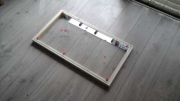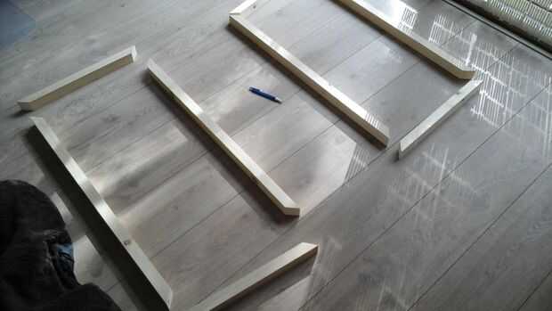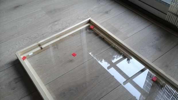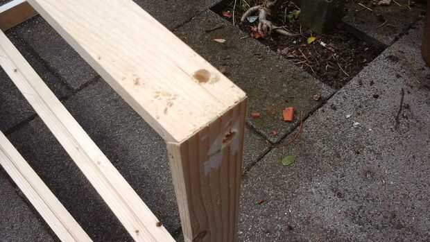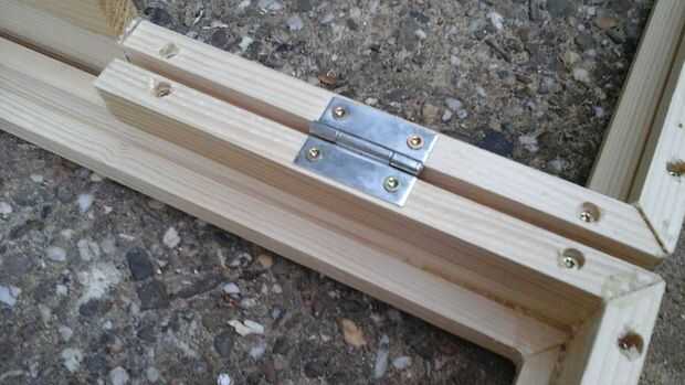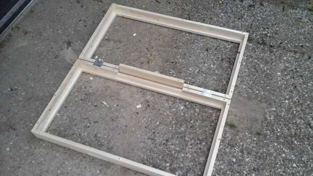 Perfore previamente, avellanar y atornillar el marco. Entonces nuevamente, pruebe el ajuste de la estructura. Si es satisfactorio desmontar el bastidor y use pegamento de construcción en todos los bordes. Atornille el marco otra vez y dejar que el pegamento seca. En este punto, también lugar la pieza de madera cortada para la manija en el marco de enfrente de tal manera que cabe cuando están cerrados los cuadros.