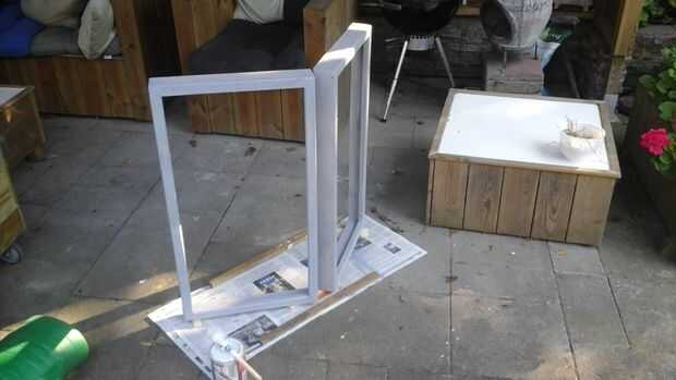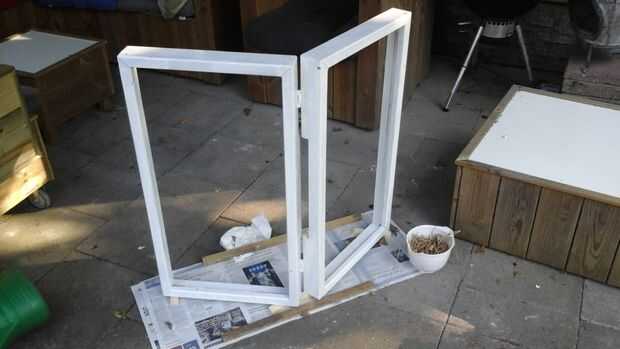 Pintura el marco protegerá la madera del agua. Utilice primero una imprimación. Estaba impaciente, así que utilicé la imprimación de spray. Si quieres mejores resultados, use imprimación pintura de madera normal.